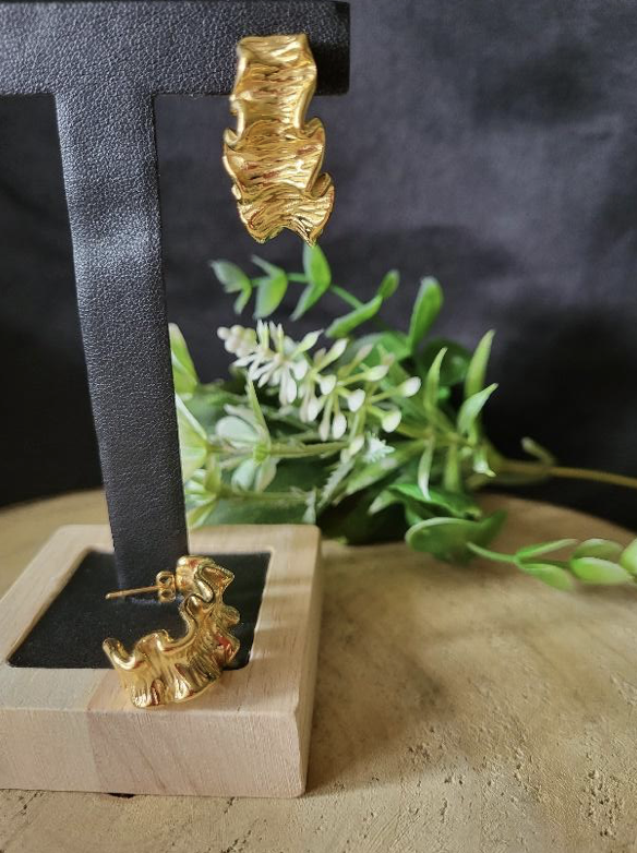 Paire de Boucles d’oreilles Céline, en acier inoxydable de couleur dorées accompagnées d’un fermoir, modèle géométrique et tendance qui s’adaptera parfaitement selon vos envies et vos tenues vestimentaires. 10g
