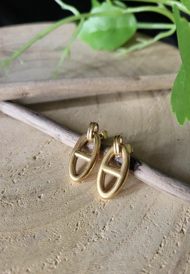 Paire de Boucles d’oreilles Cristel, en acier inoxydable de couleur doré, accompagné d’un fermoir, modèle nez de cochon, et tendance qui s’adaptera parfaitement selon vos envies et vos tenues vestimentaires. 15g